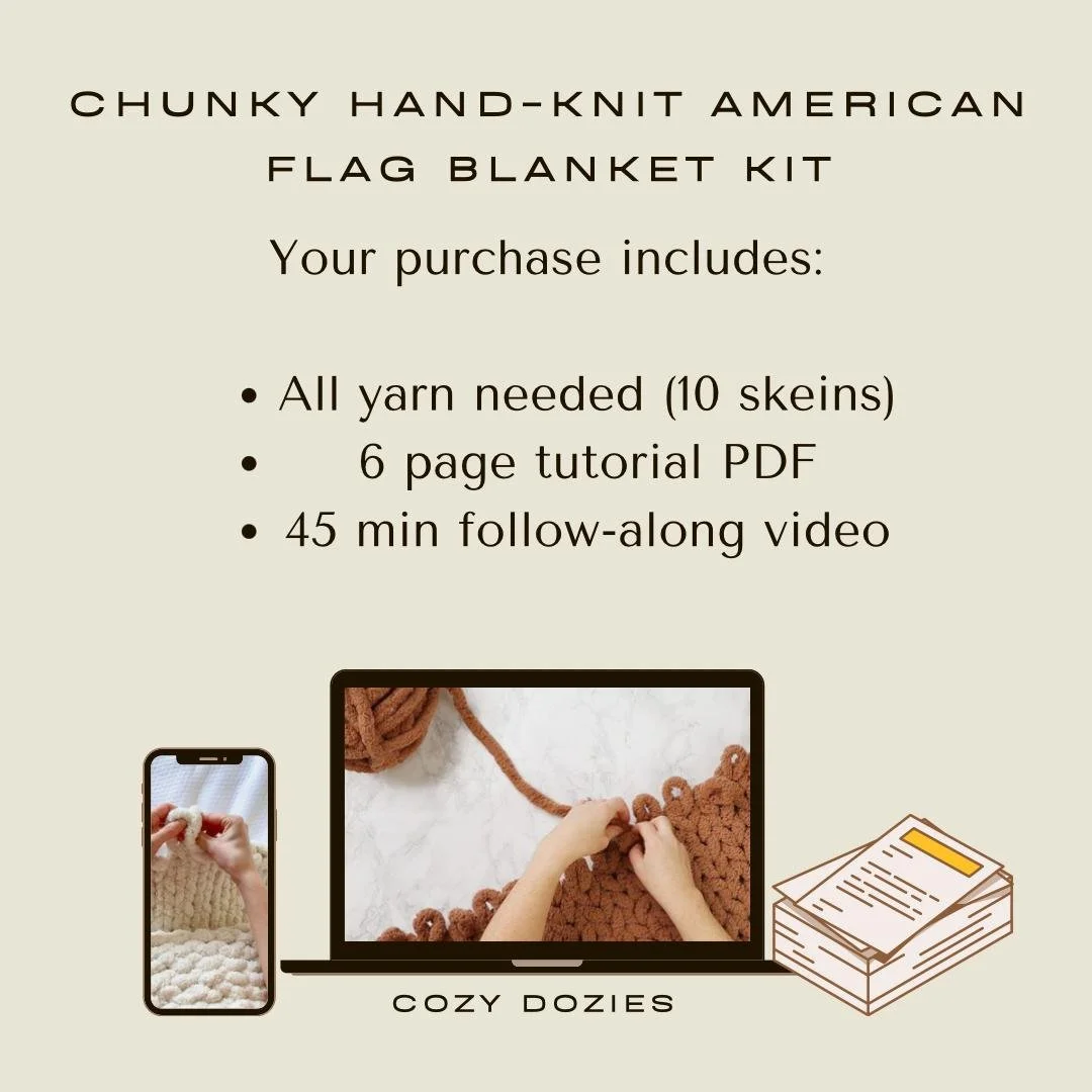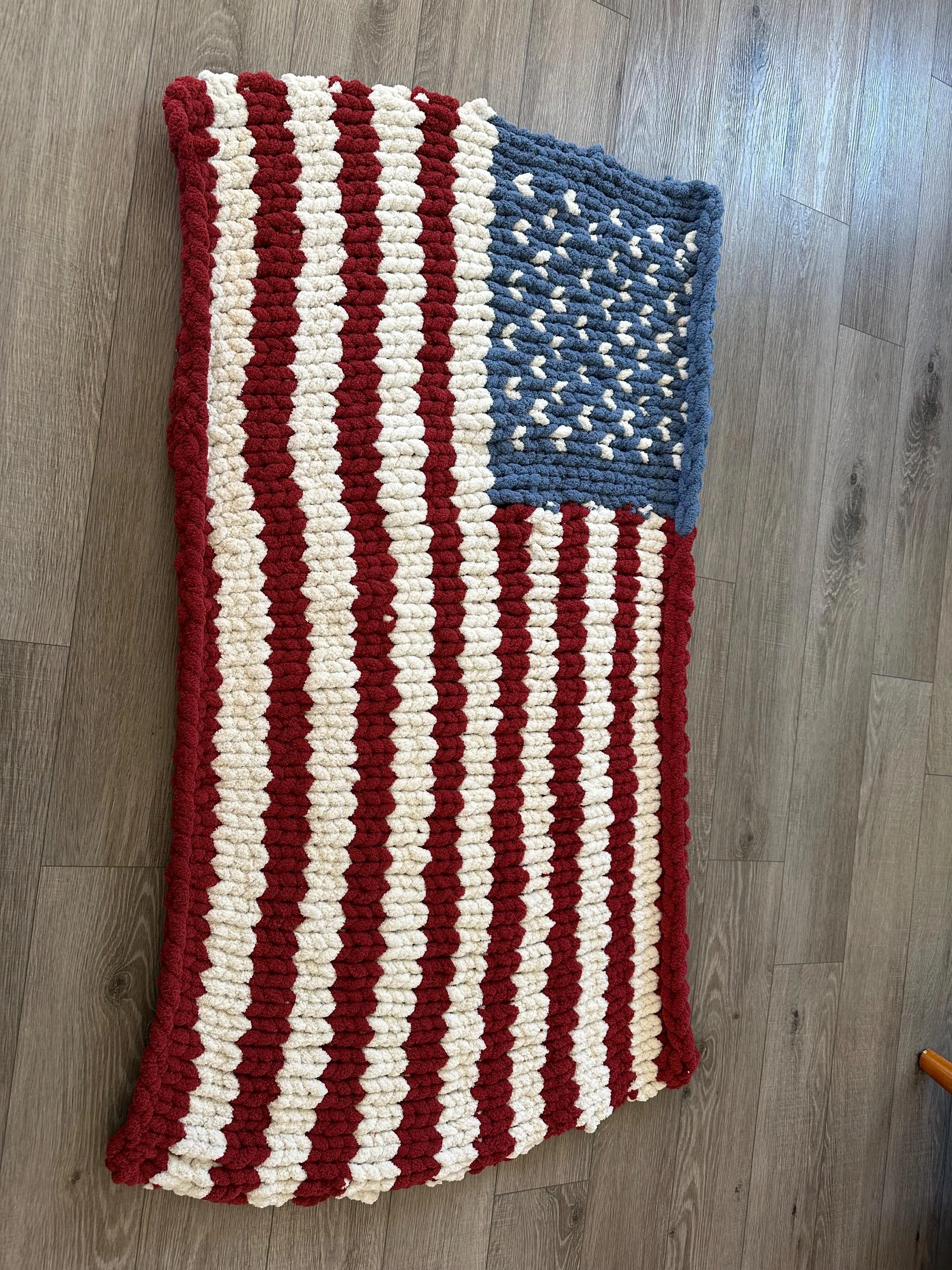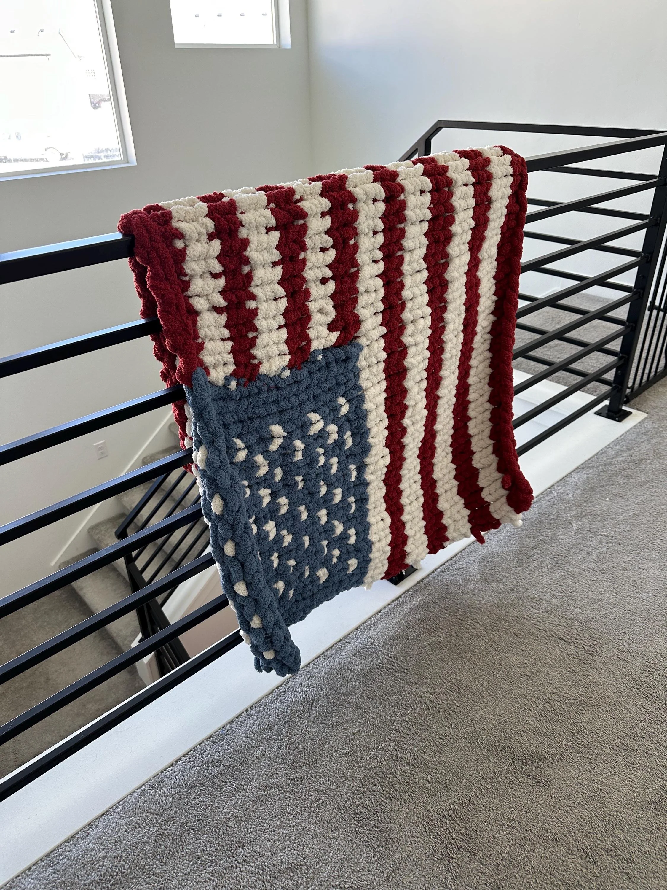Chunky Knit American Flag Blanket Video & PDF Tutorial (PDF Pattern)