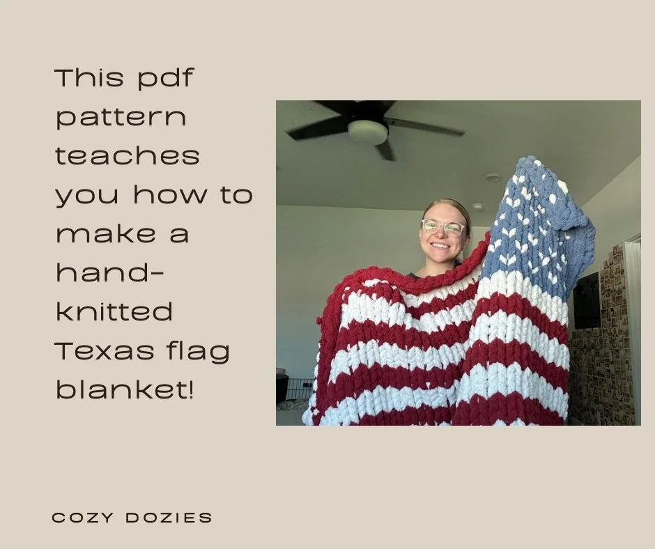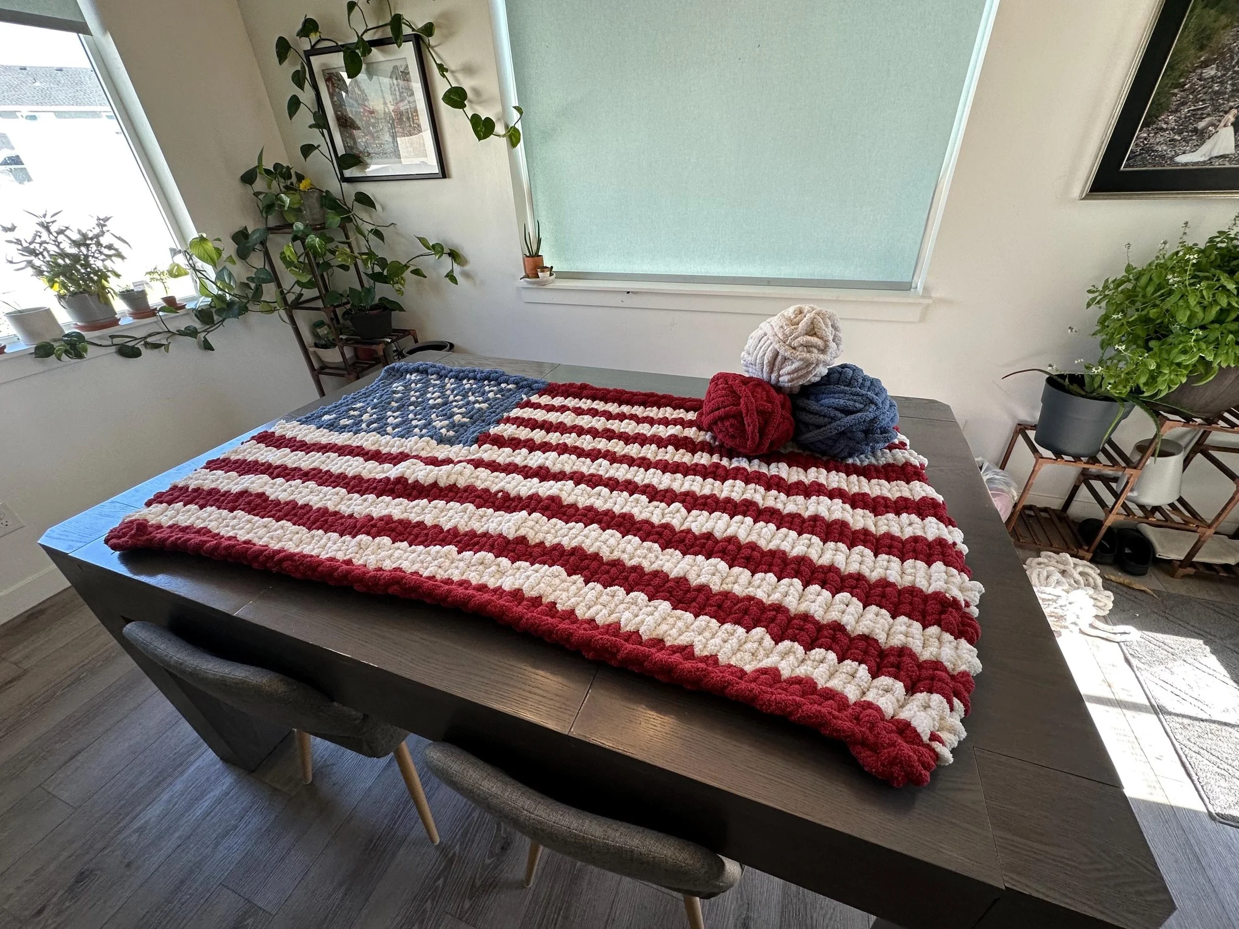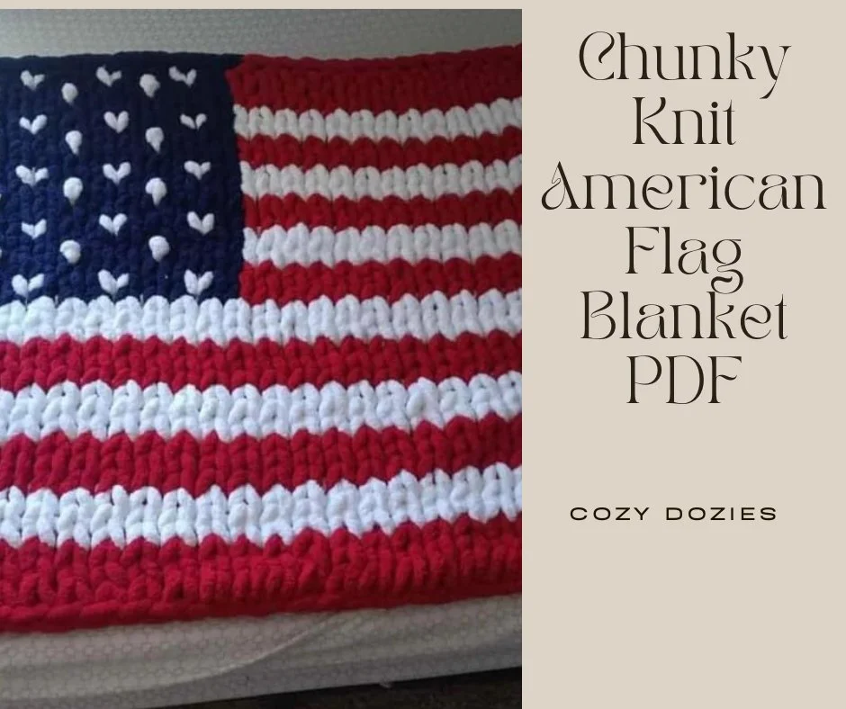 Chunky Knit American Flag Blanket Video & PDF Tutorial (PDF Pattern)