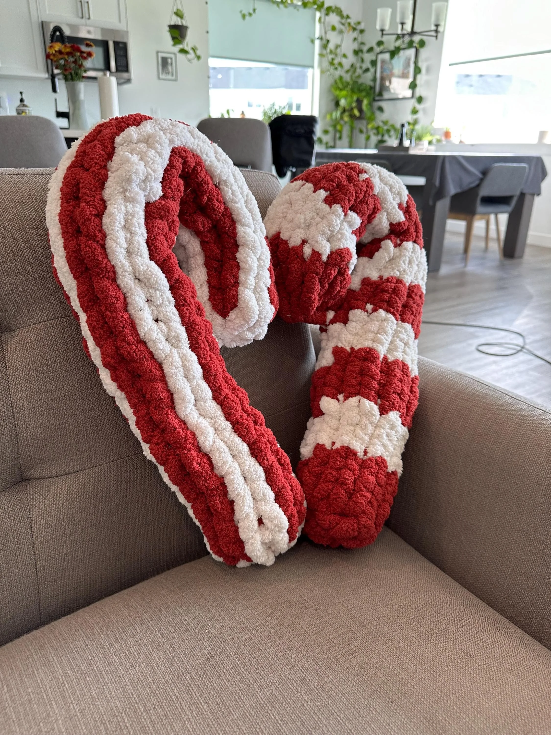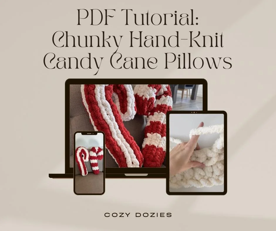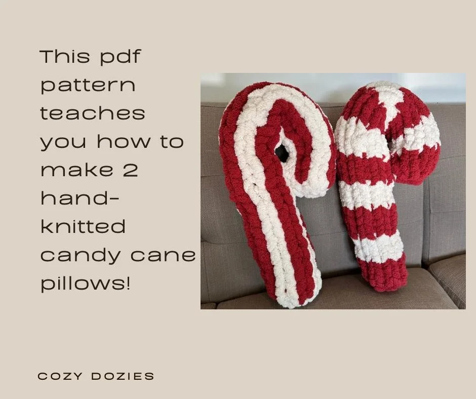 Chunky Knit Candy Cane Pillows PDF Pattern: DIY Christmas Home Decor
