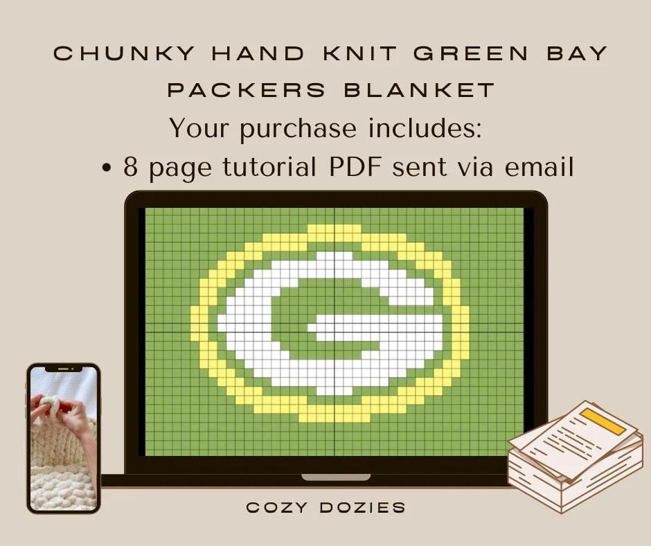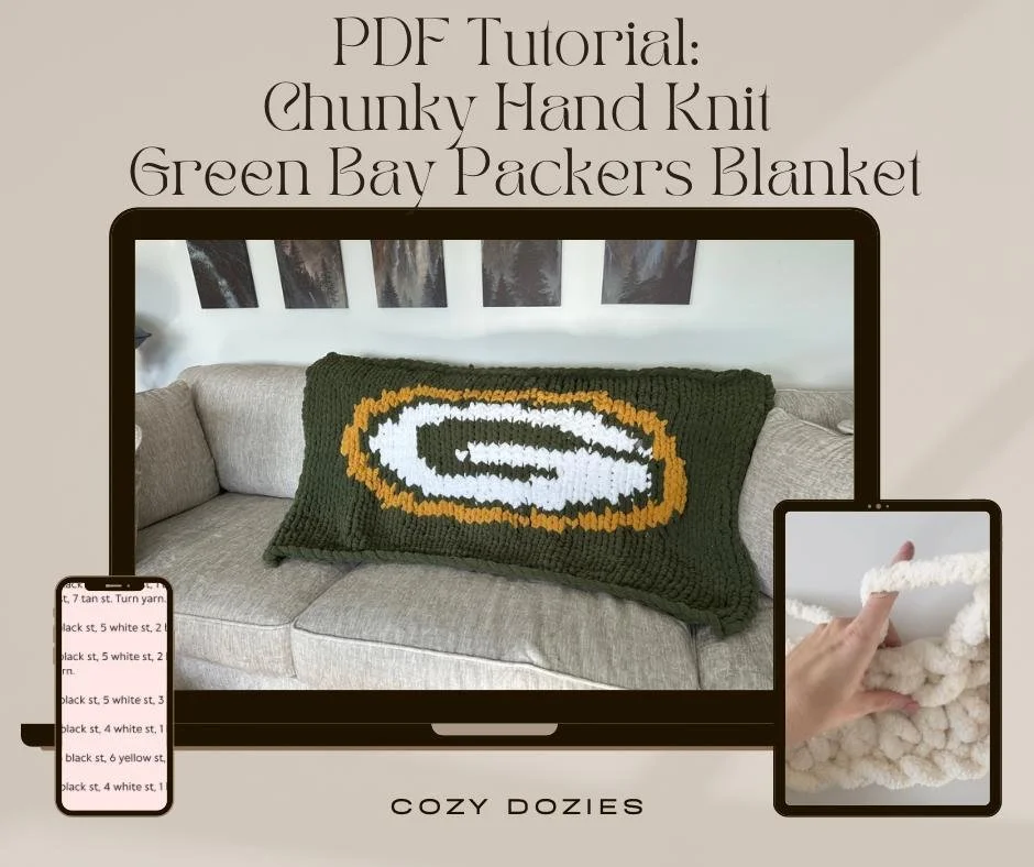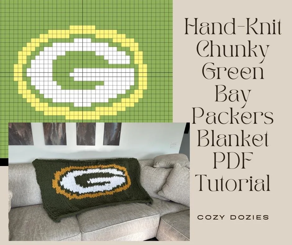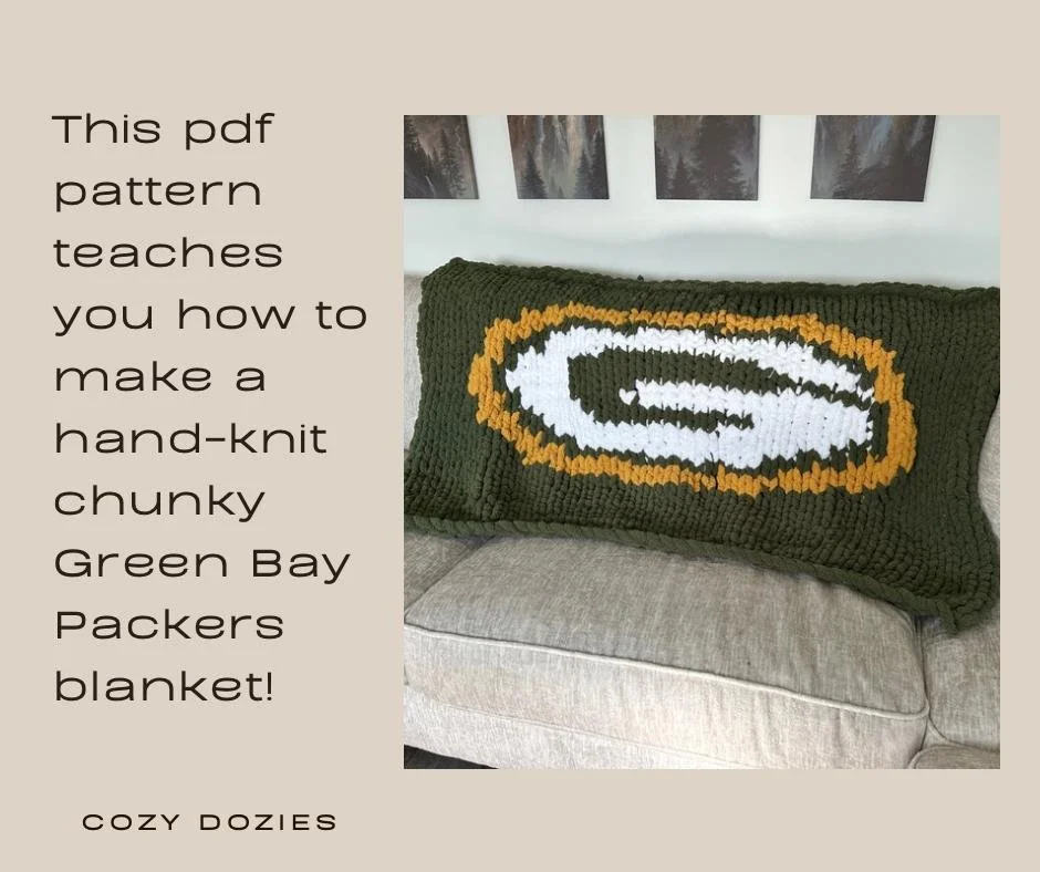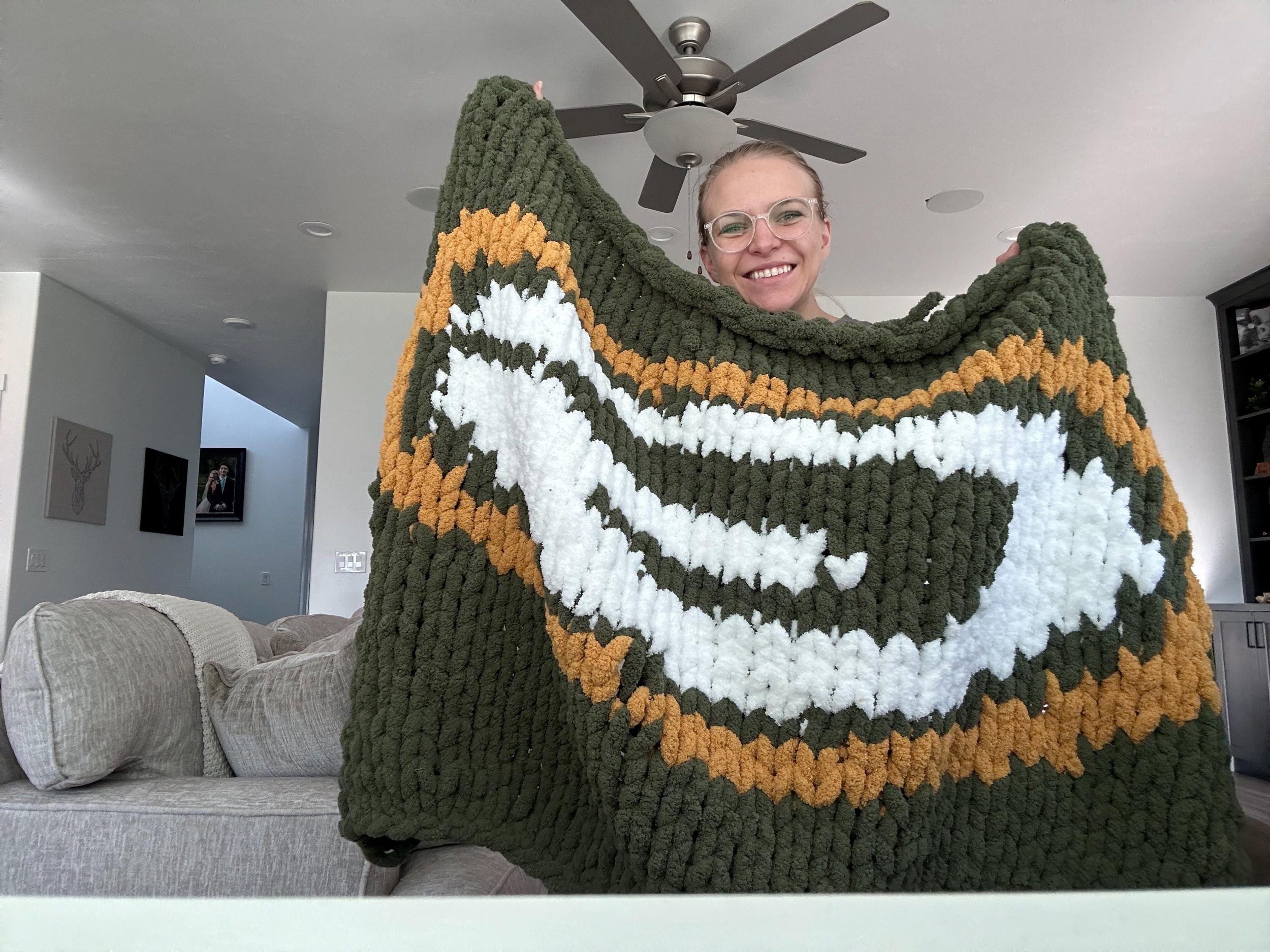Chunky Knit Green Bay Packers Football Inspired Blanket PDF Pattern: DIY Knit Tutorial (Digital Download)