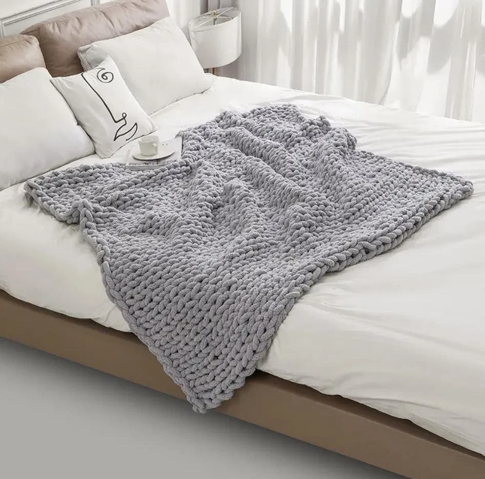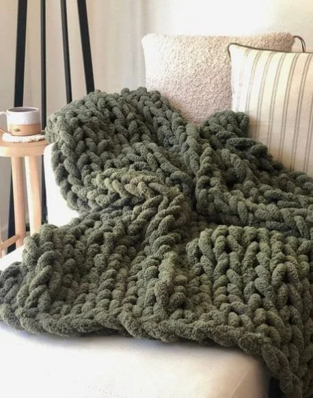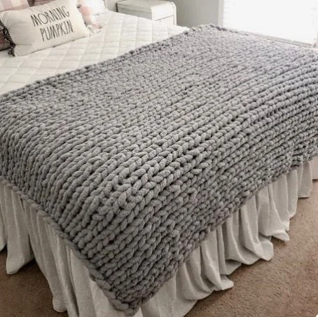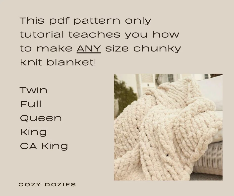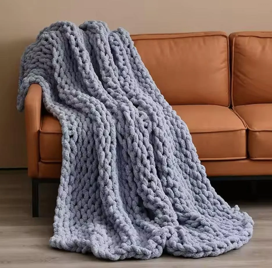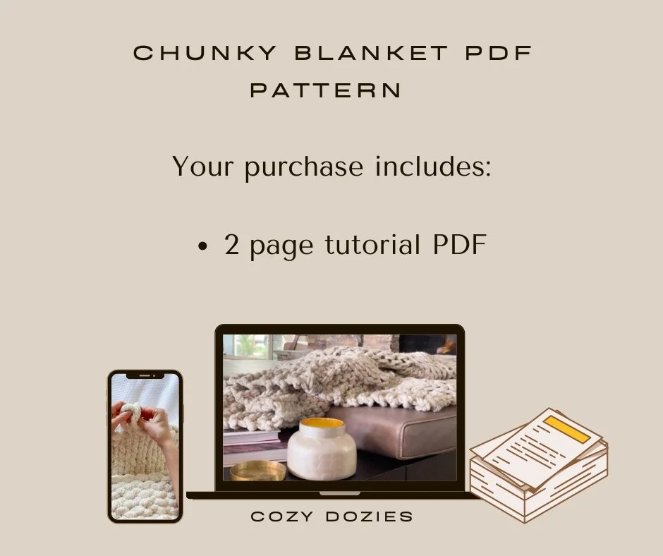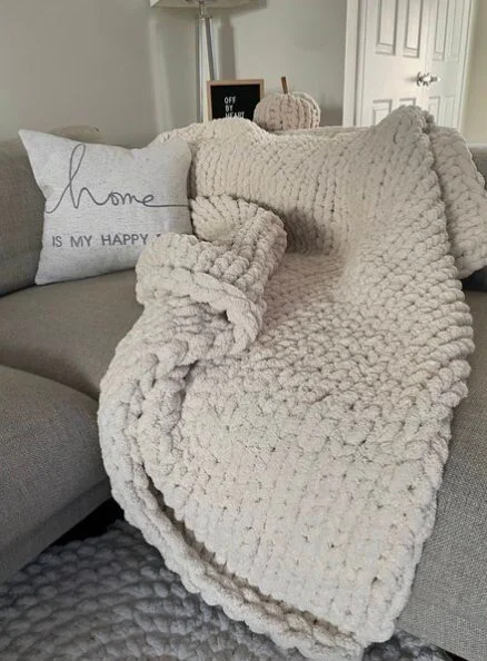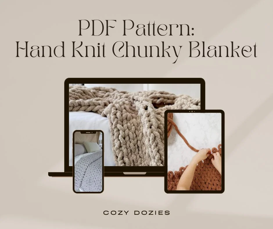 Chunky Knit Throw Blanket PDF Pattern: Hand-Knitting DIY