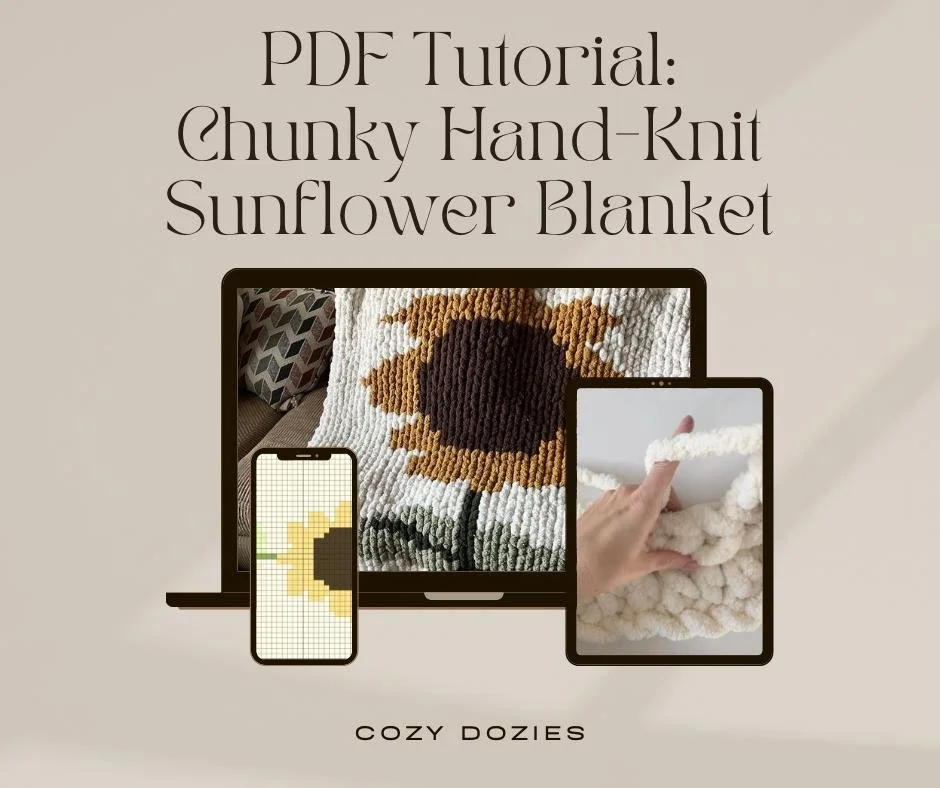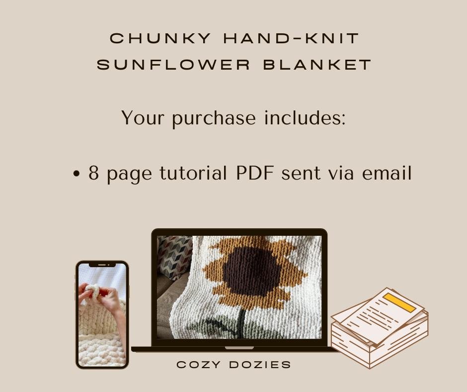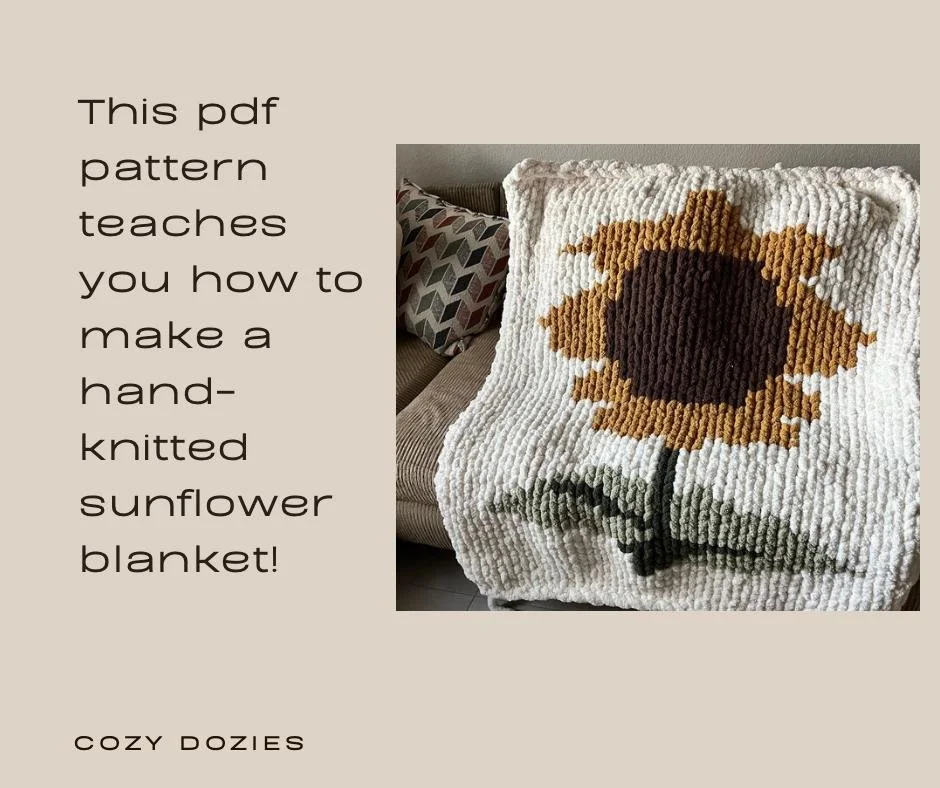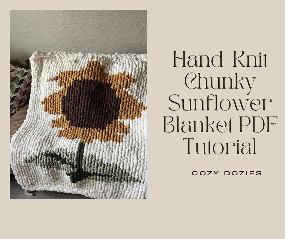Chunky Knit Sunflower Blanket PDF Pattern: DIY Hand Knit Tutorial