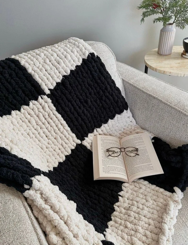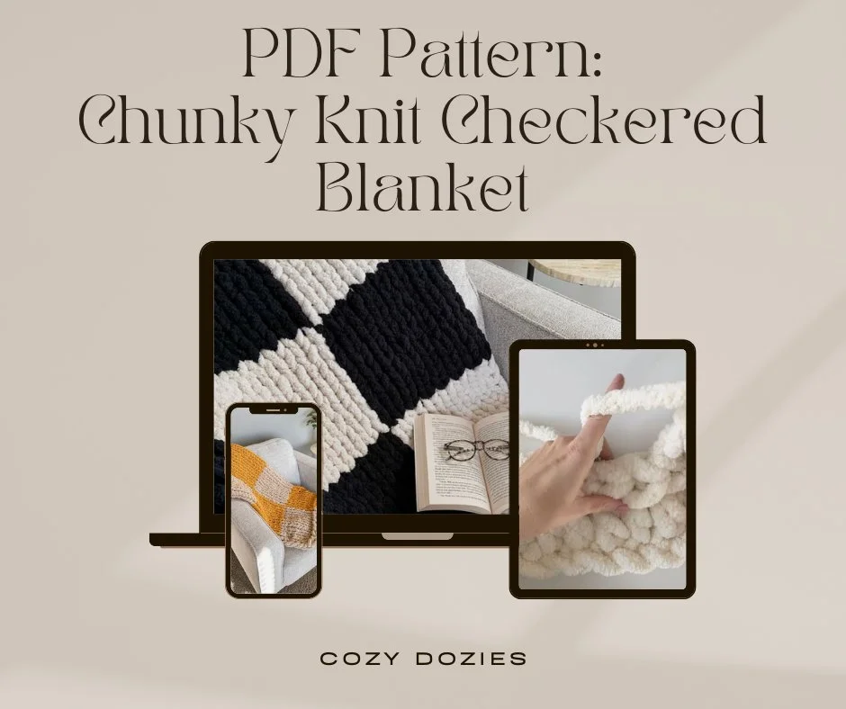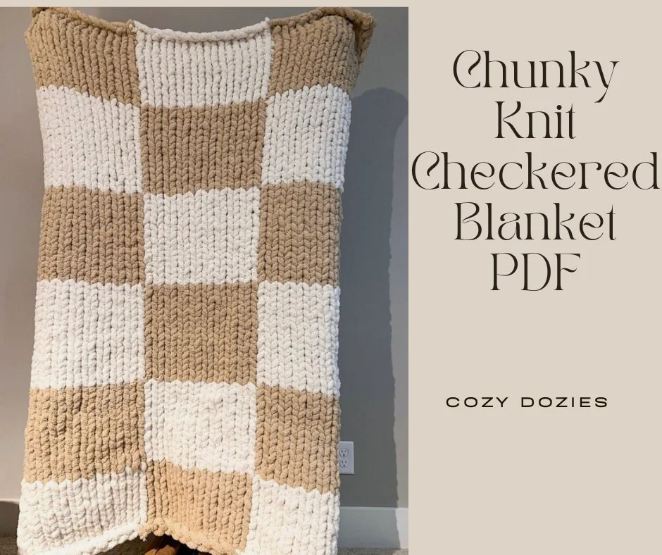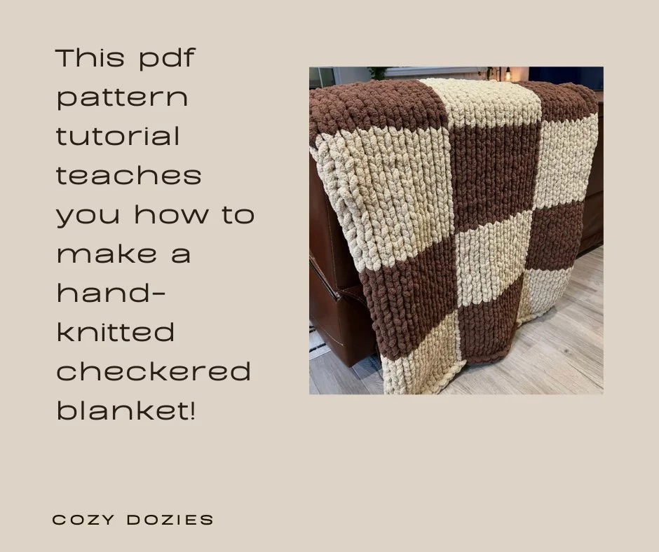 Chunky Knit Checkered Blanket PDF Pattern: DIY Cozy Throw (60x80")
