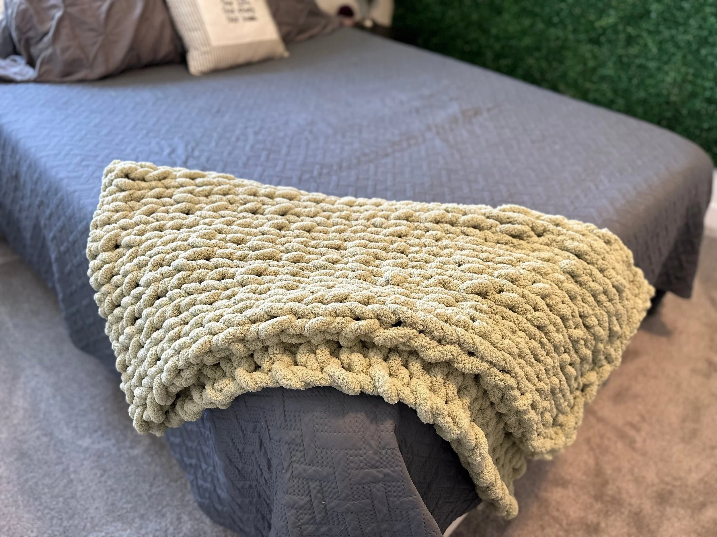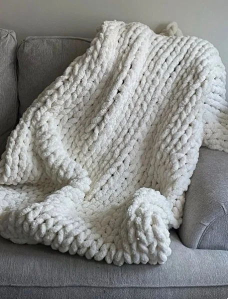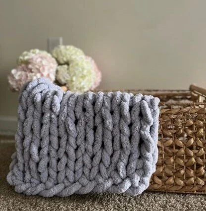 Chunky Knit Throw Blanket Video & PDF Tutorial: DIY Hand Knitting (PDF)