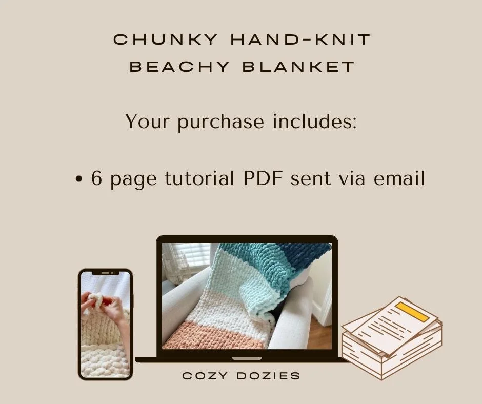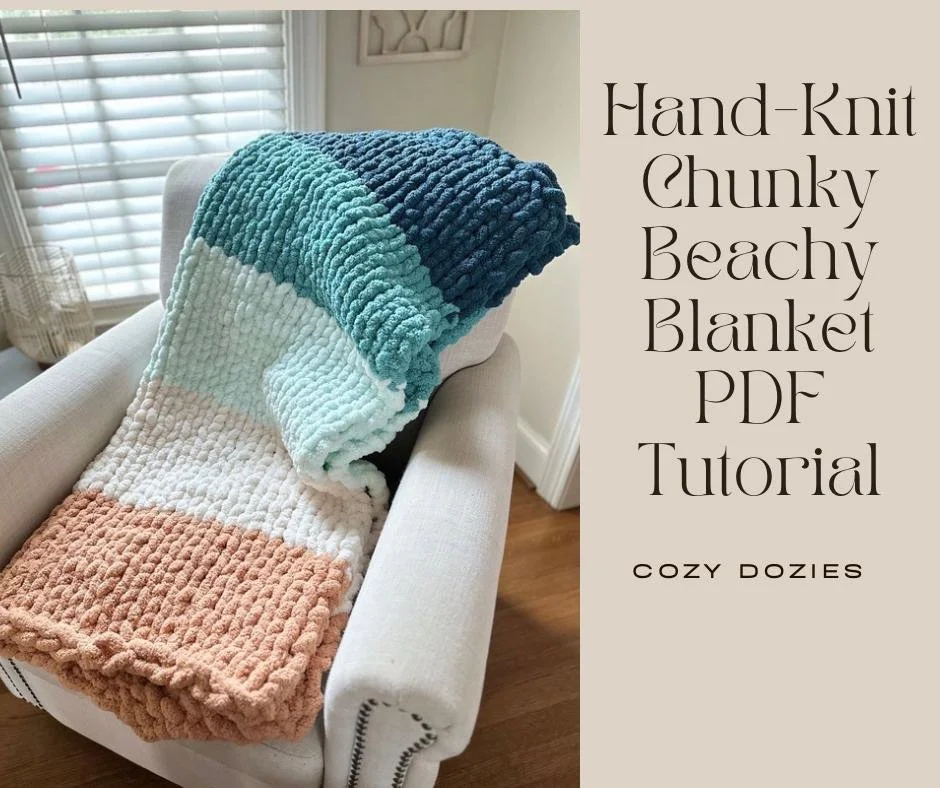 Chunky Knit Ocean Blanket PDF Pattern: Beachy Vibe DIY Tutorial