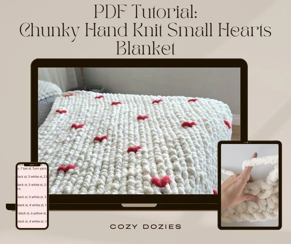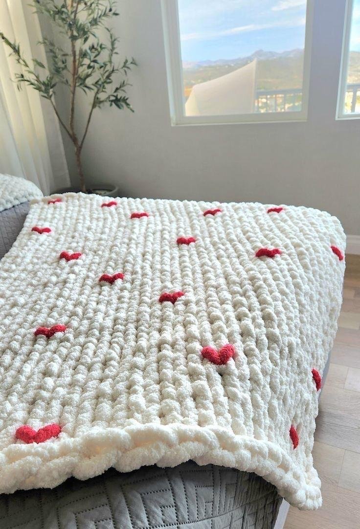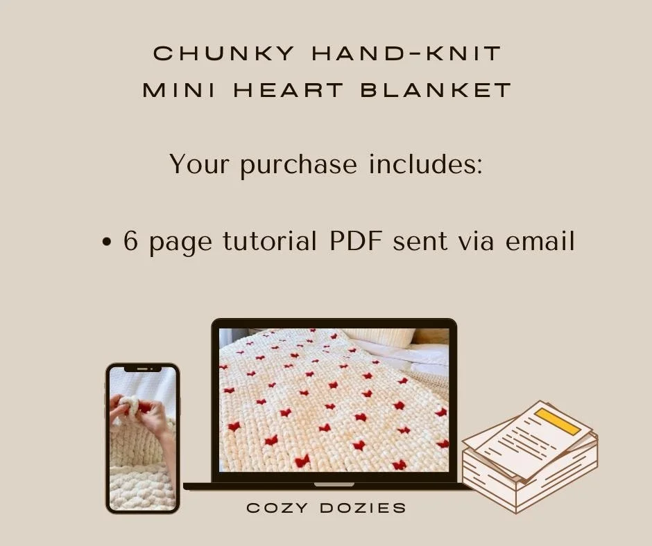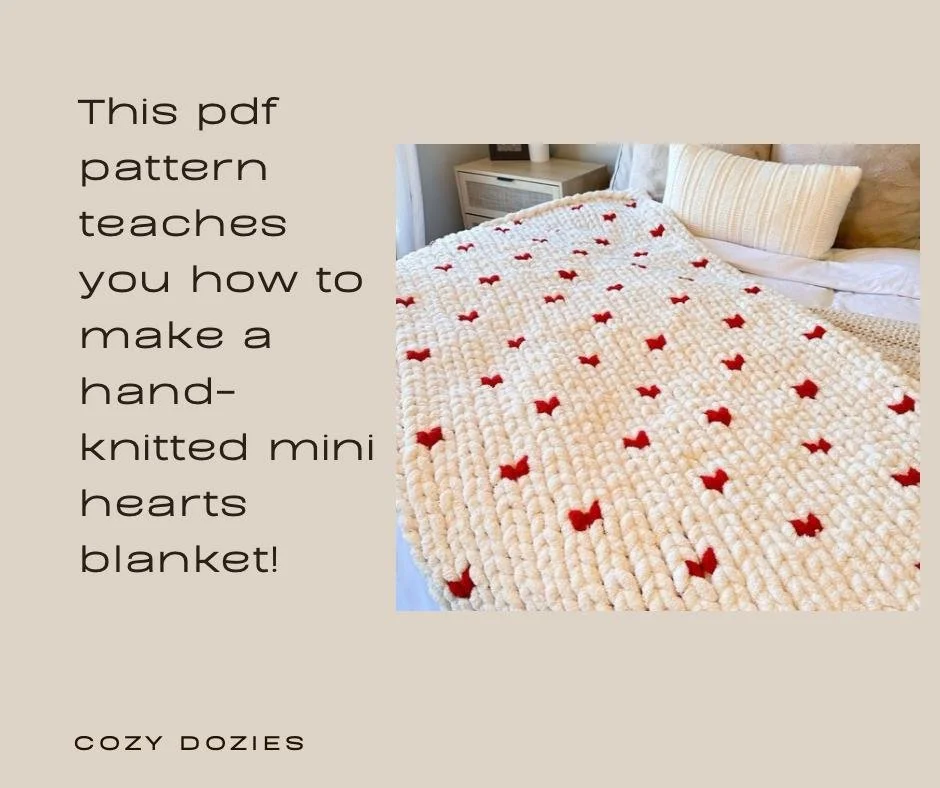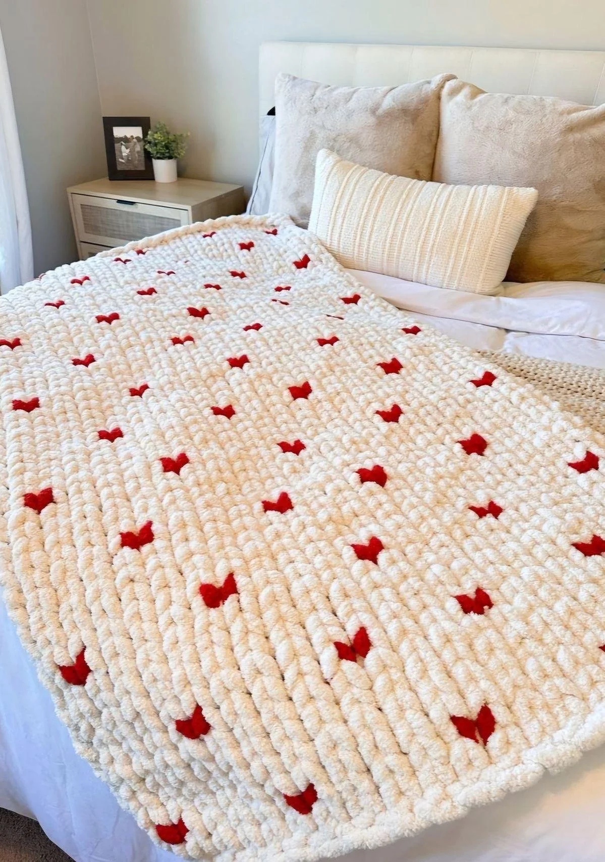 Chunky Knit Hearts Blanket PDF Pattern: DIY Tutorial Valentines Gift