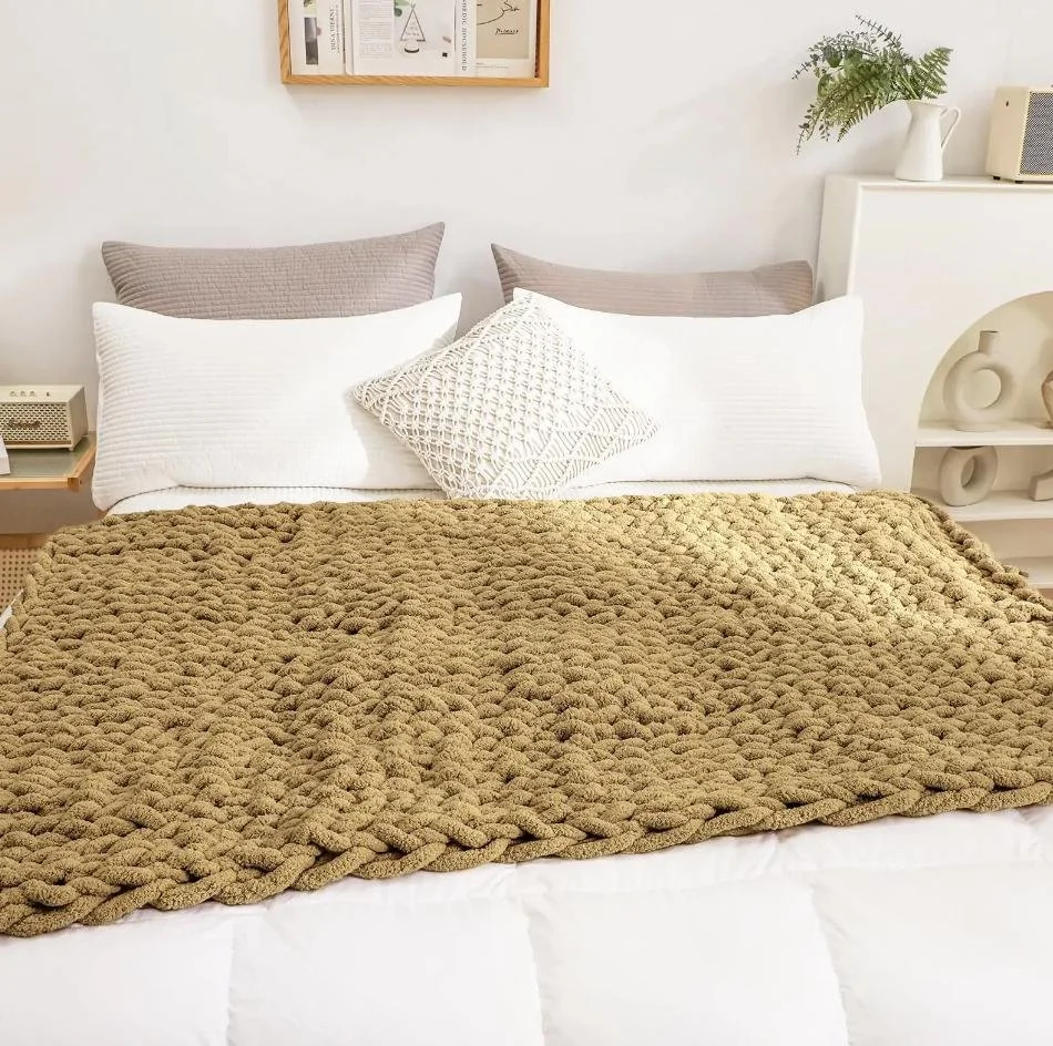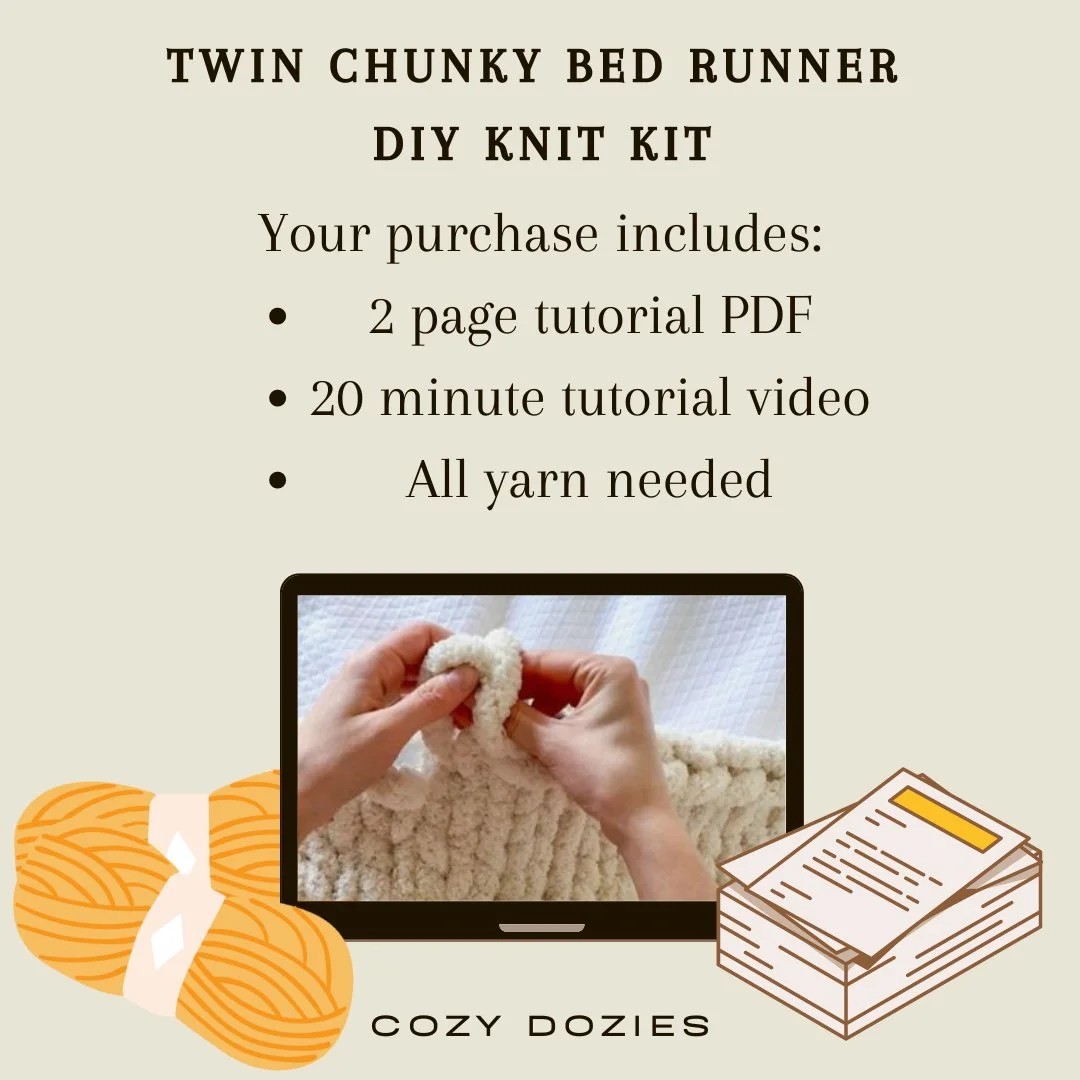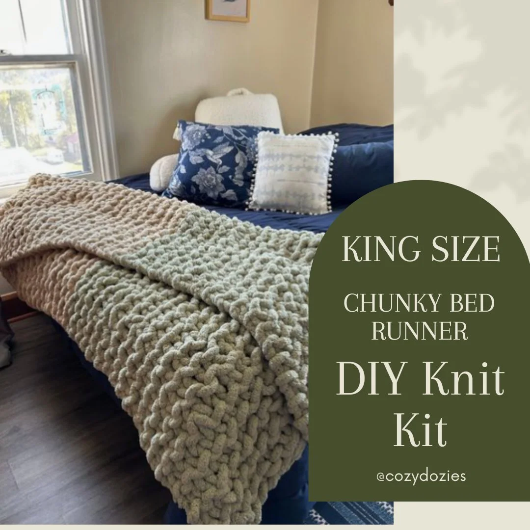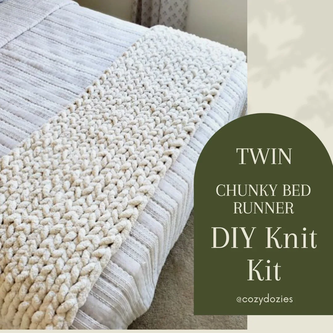 Chunky Knit Twin Bed Runner DIY Kit | Yarn & Instructions | Handmade Crafting Comfort