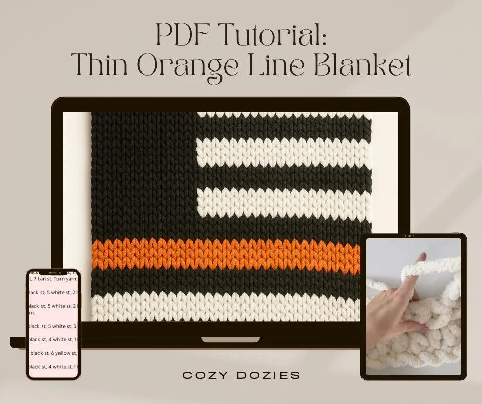 Chunky Knit Thin Orange Line Flag Blanket PDF Pattern: DIY Craft for Search and Rescue