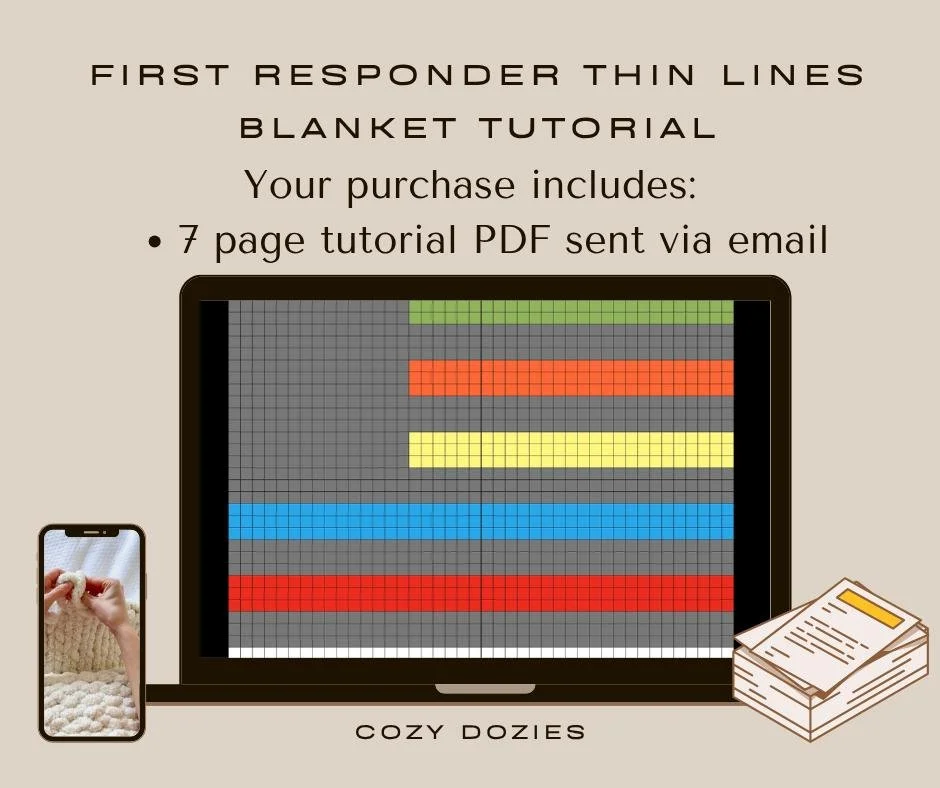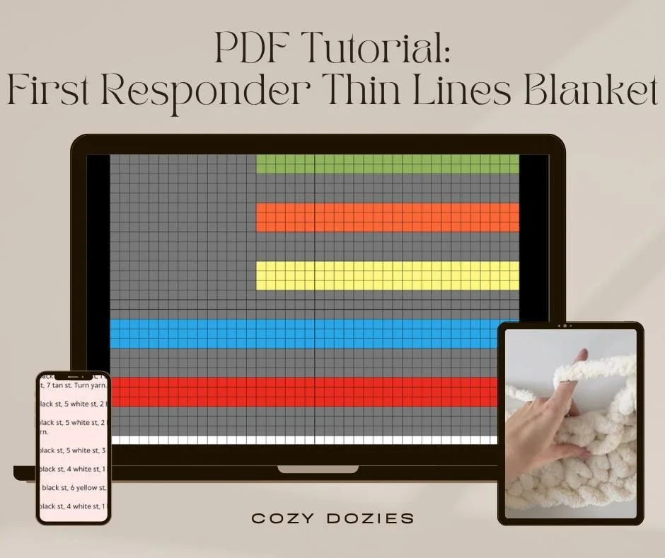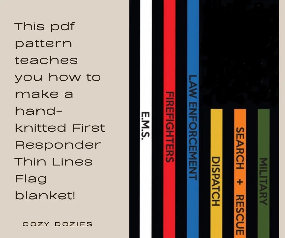 Chunky Knit First Responder Flag Blanket PDF Pattern: DIY Craft for Thin Line