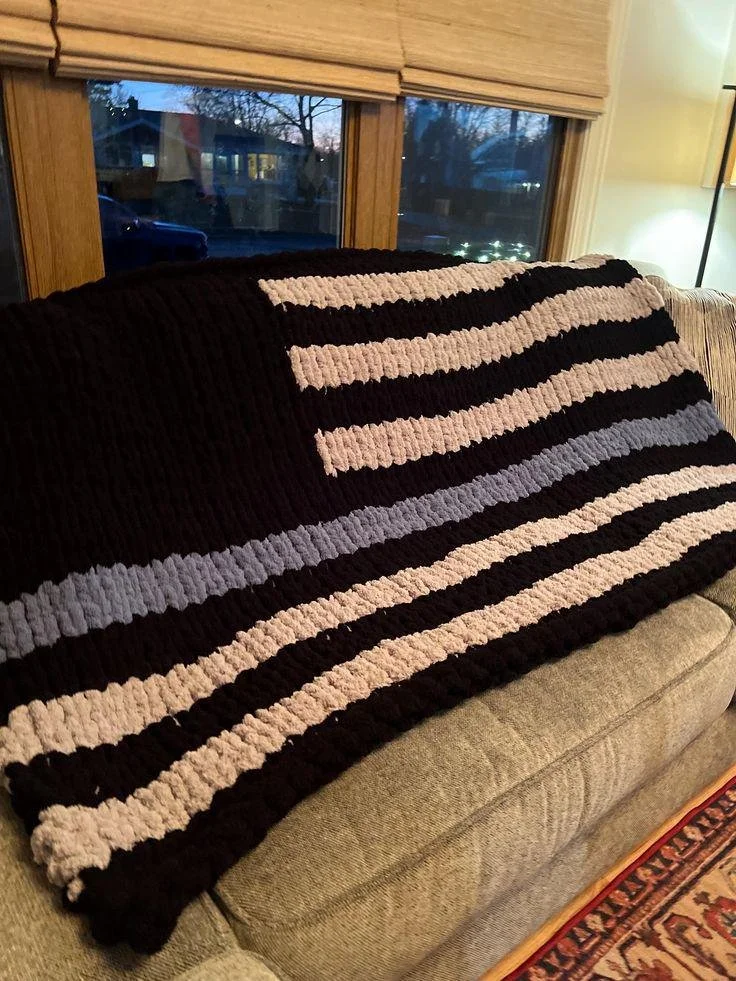 Chunky Knit Thin Blue Line Flag Blanket PDF Pattern: DIY Craft