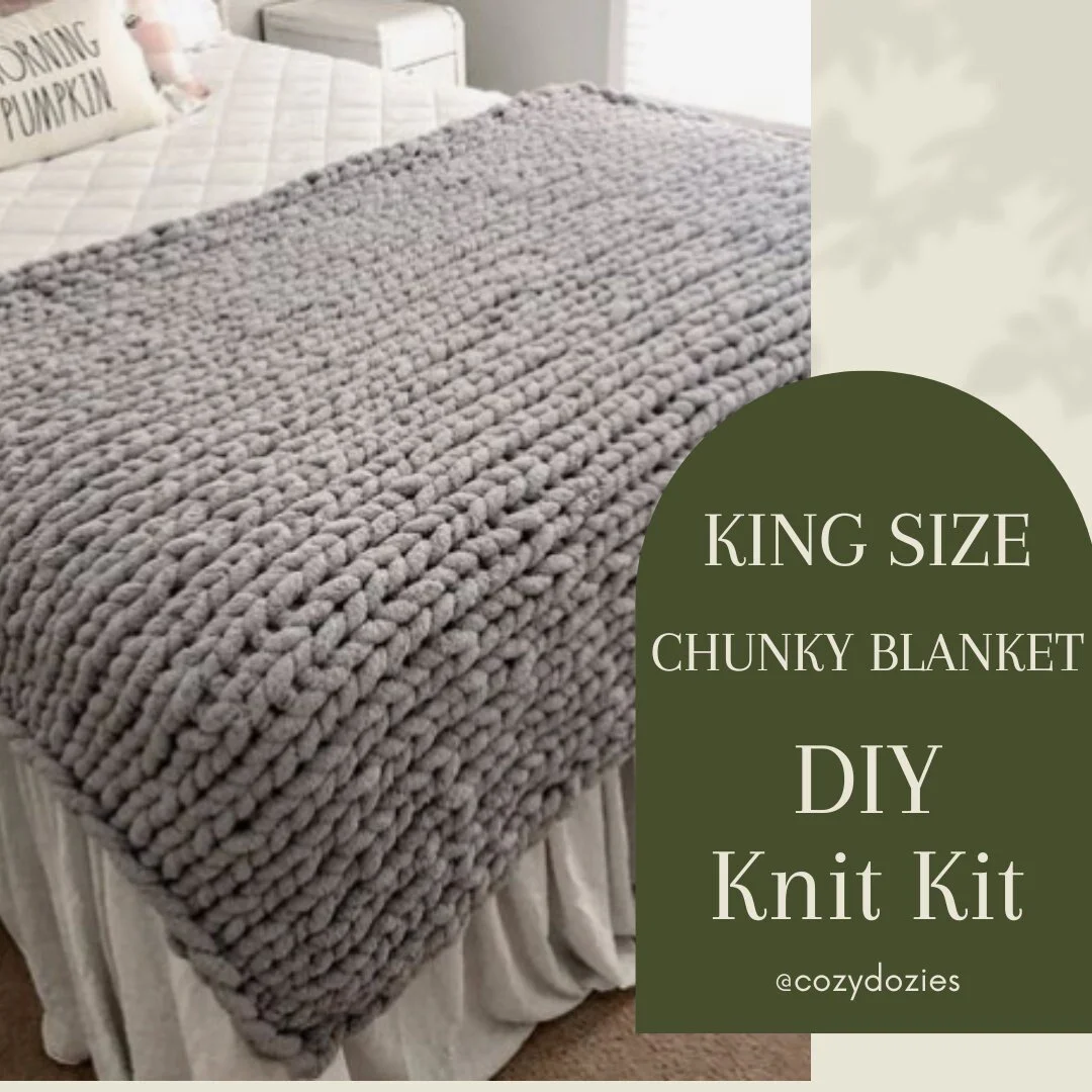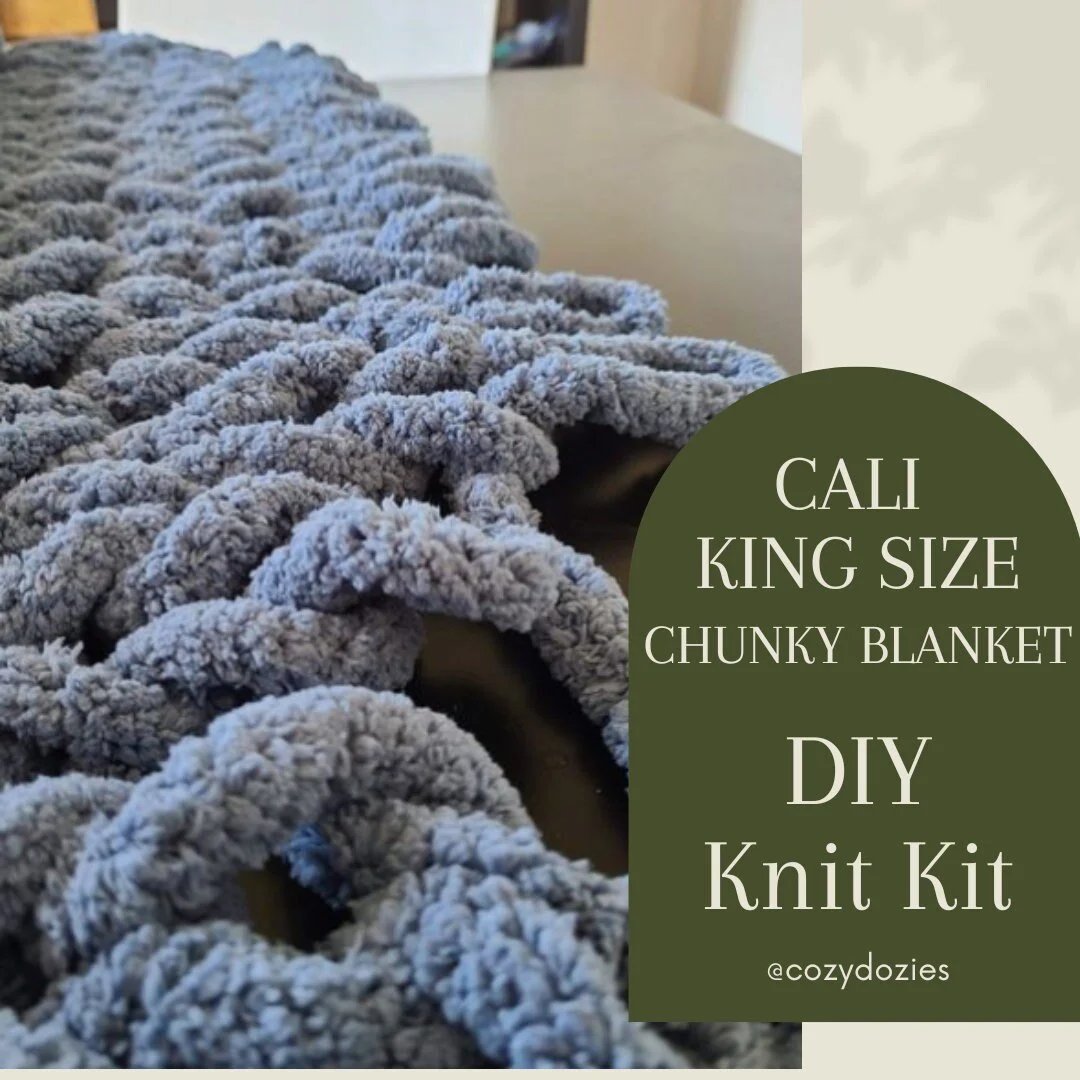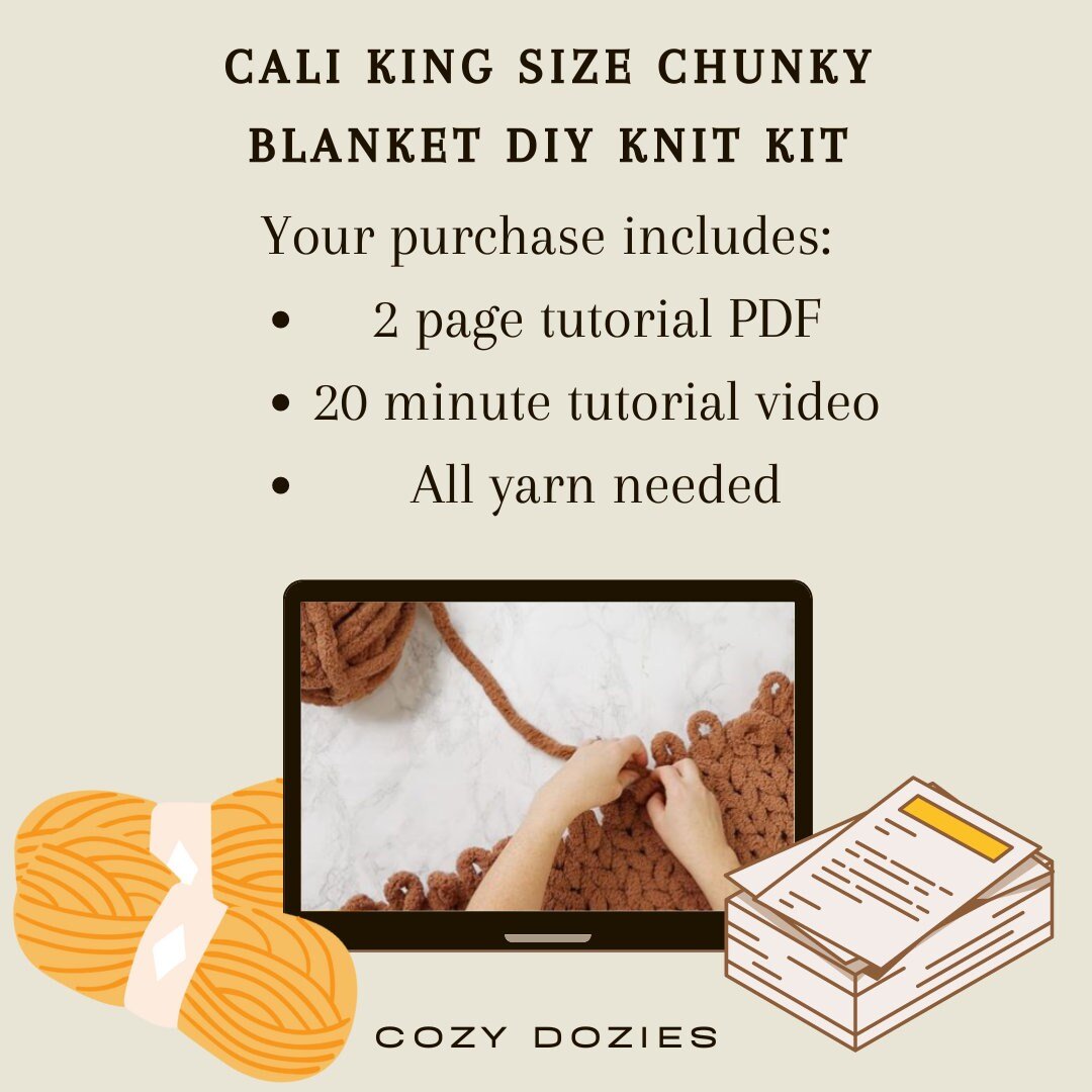 KNIT KIT Cali King Chunky Blanket | Diy Crafting Comfort | Yarn & Instructions Included | Handmade Craft |