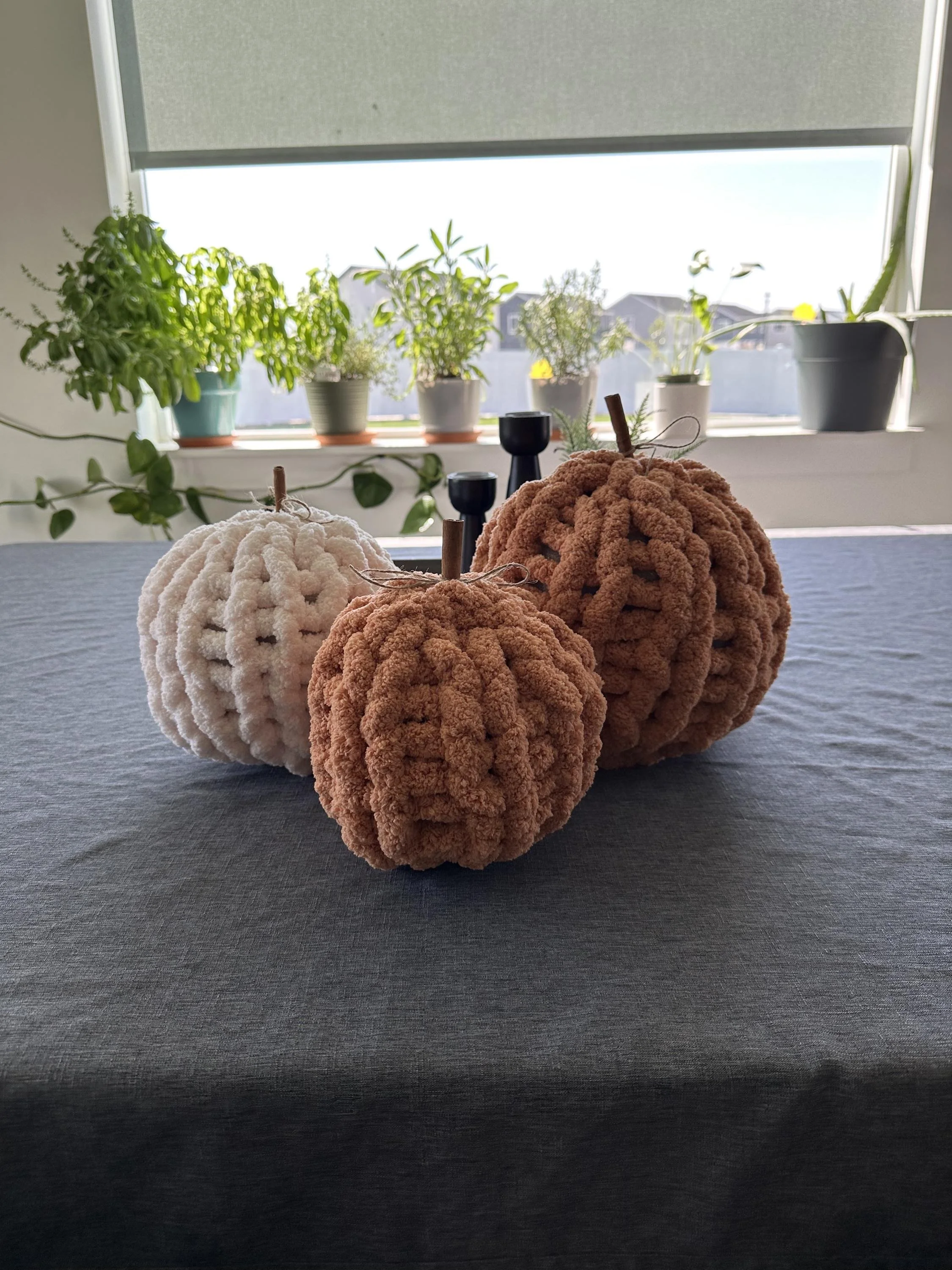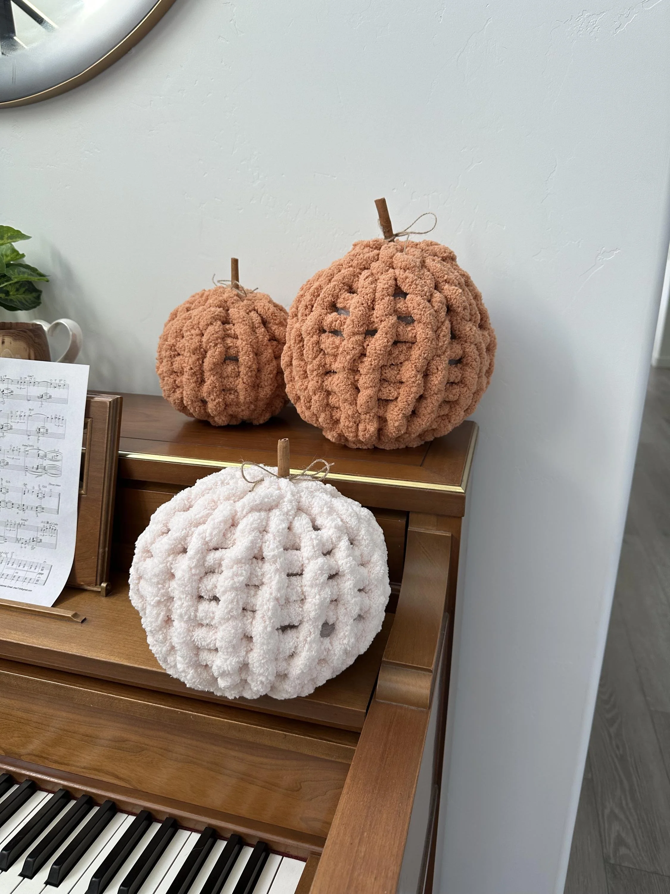 Chunky Knit Pumpkin Kit: DIY Autumn Decor with Yarn & Cinnamon Sticks (PDF Instructions)