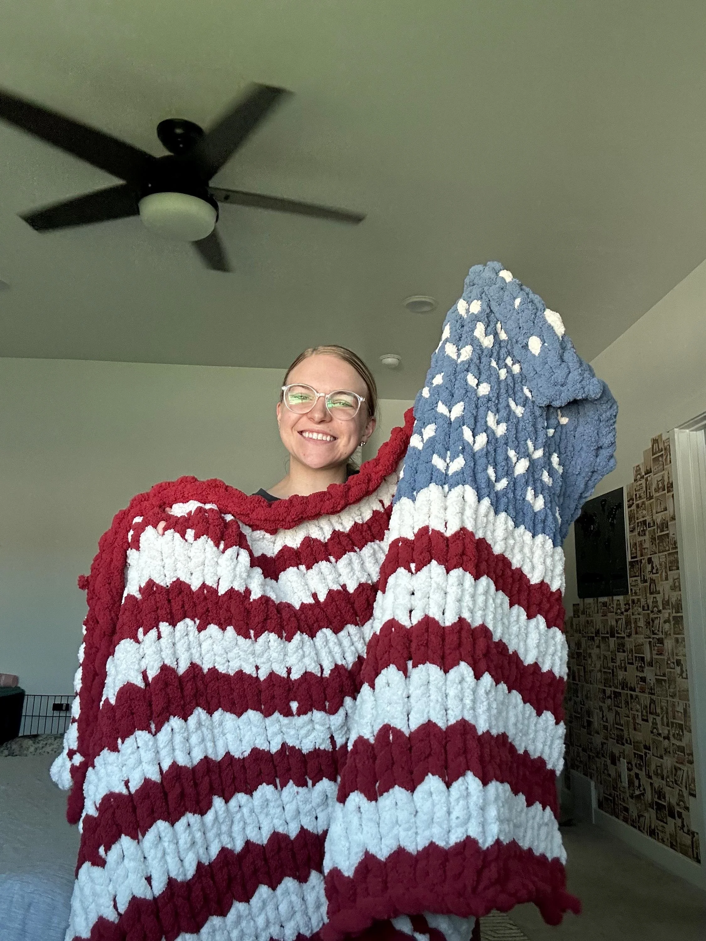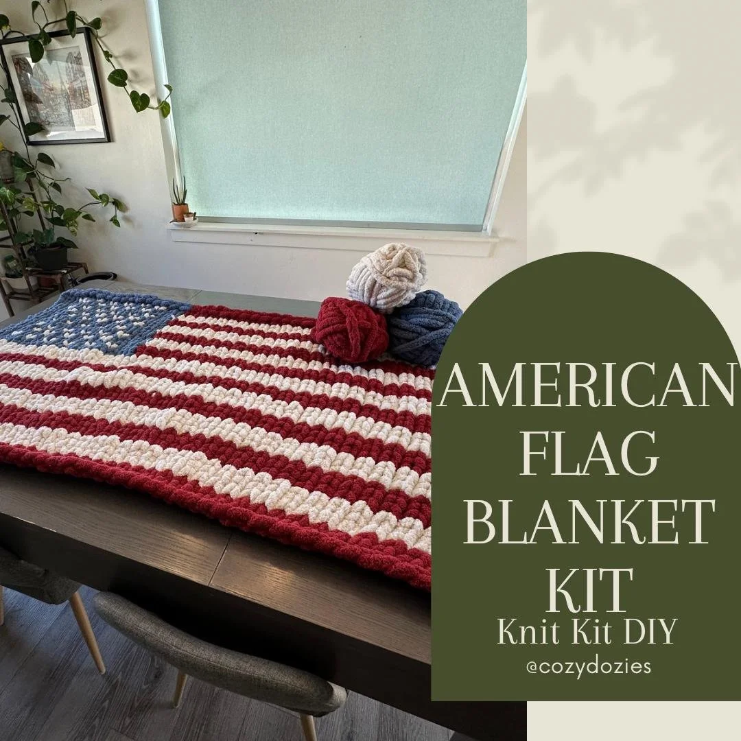 KNIT KIT American Flag Blanket DIY | Crafting Comfort | Yarn & Instructions Included | Handmade Craft |