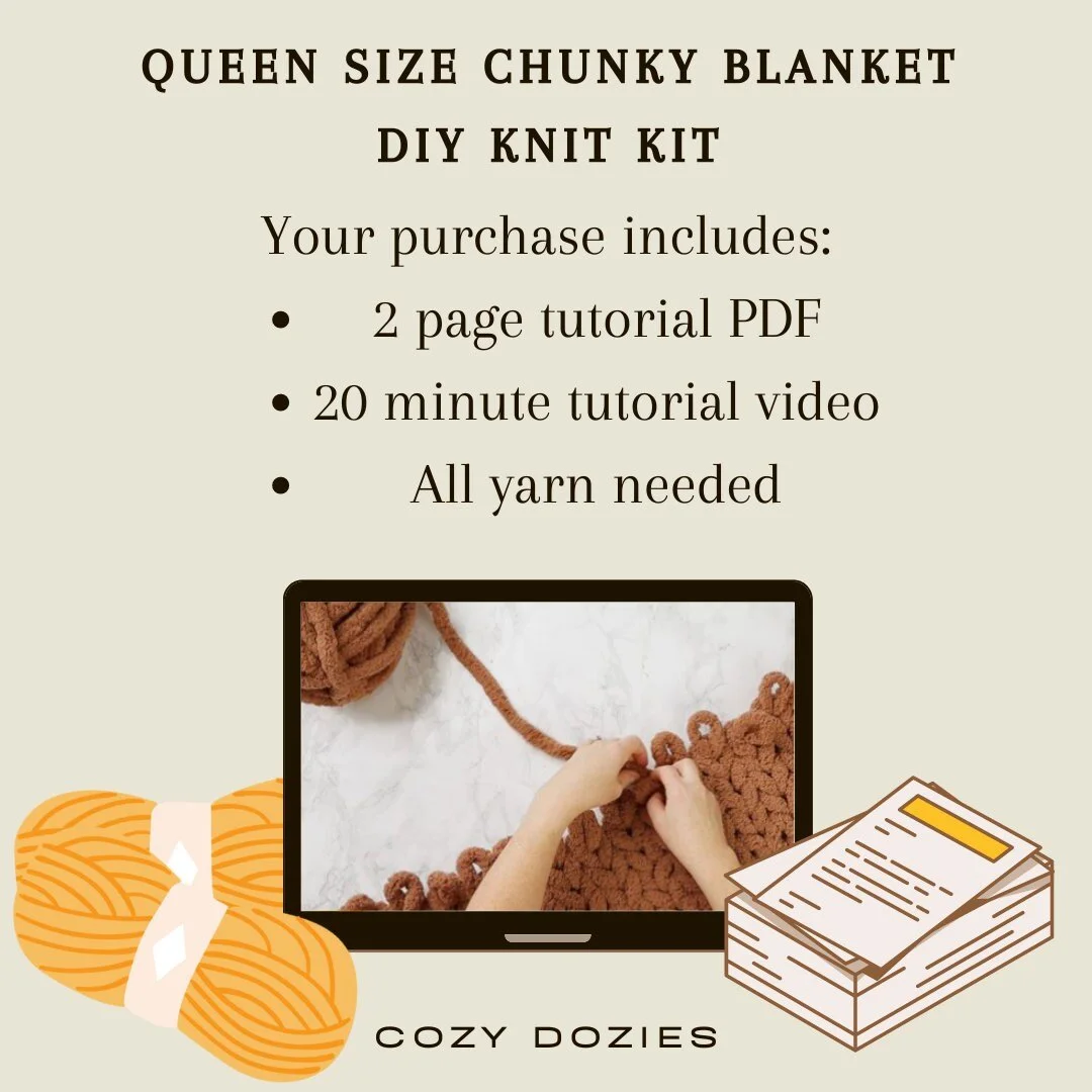 KNIT KIT Queen Size Chunky Blanket DIY | Crafting Comfort | Yarn & Instructions Included | Handmade Craft |