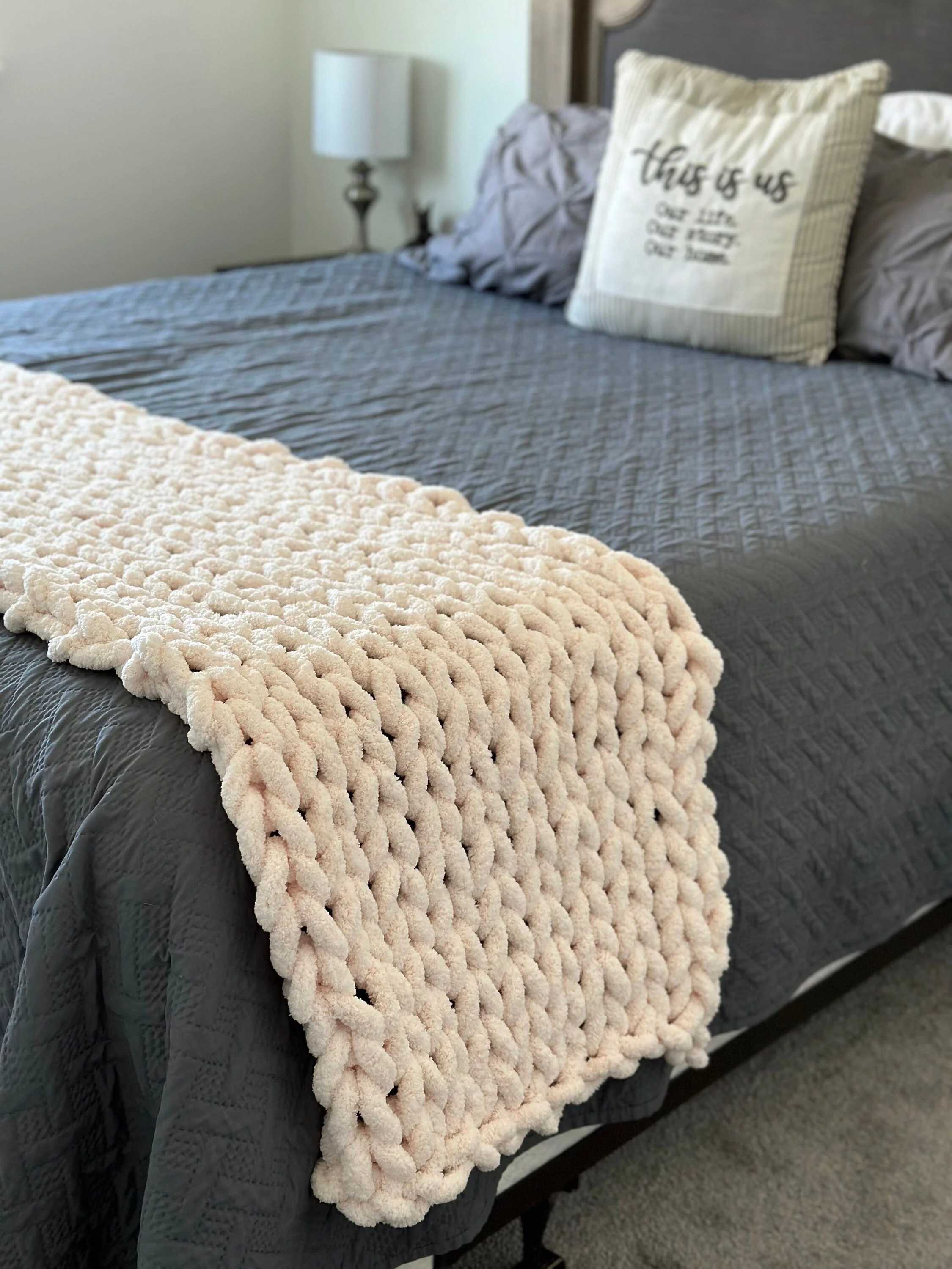 Chunky Knit Bed Runner DIY Kit: Full Size, Handmade Yarn & Instructions
