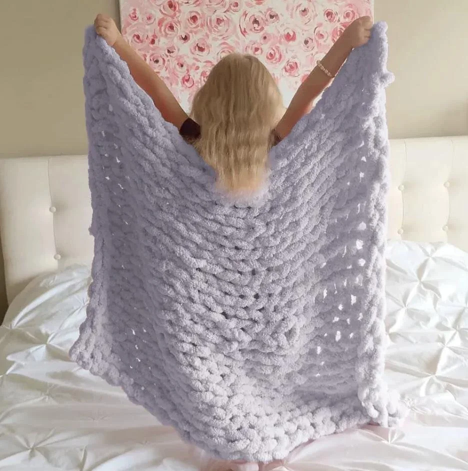 KNIT KIT Full Size Chunky Blanket DIY | Crafting Comfort | Yarn & Instructions Included | Handmade Craft |