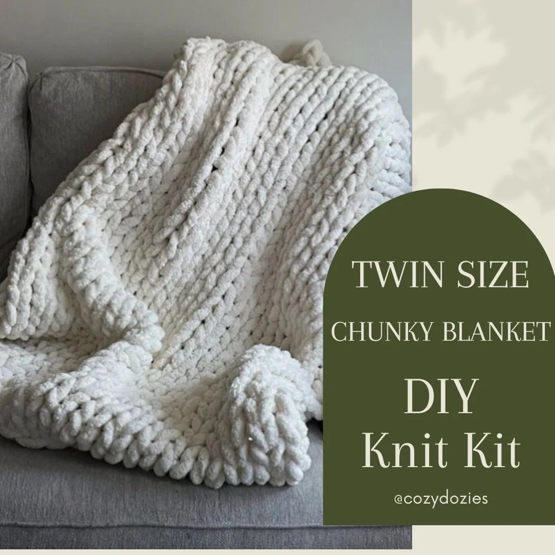 KNIT KIT Twin Size Chunky Blanket DIY | Crafting Comfort | Yarn & Instructions Included | Handmade Craft |
