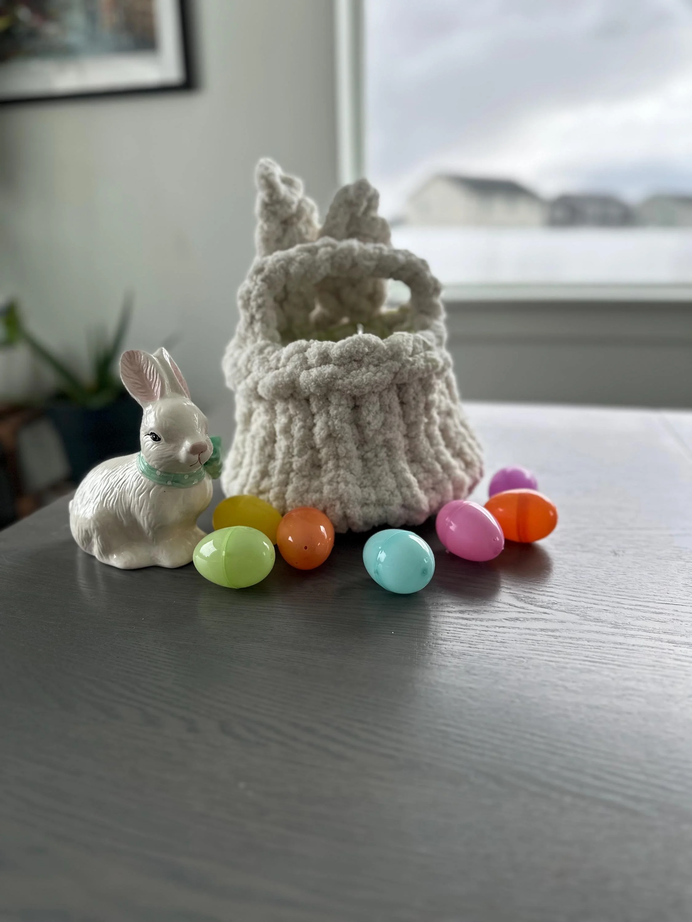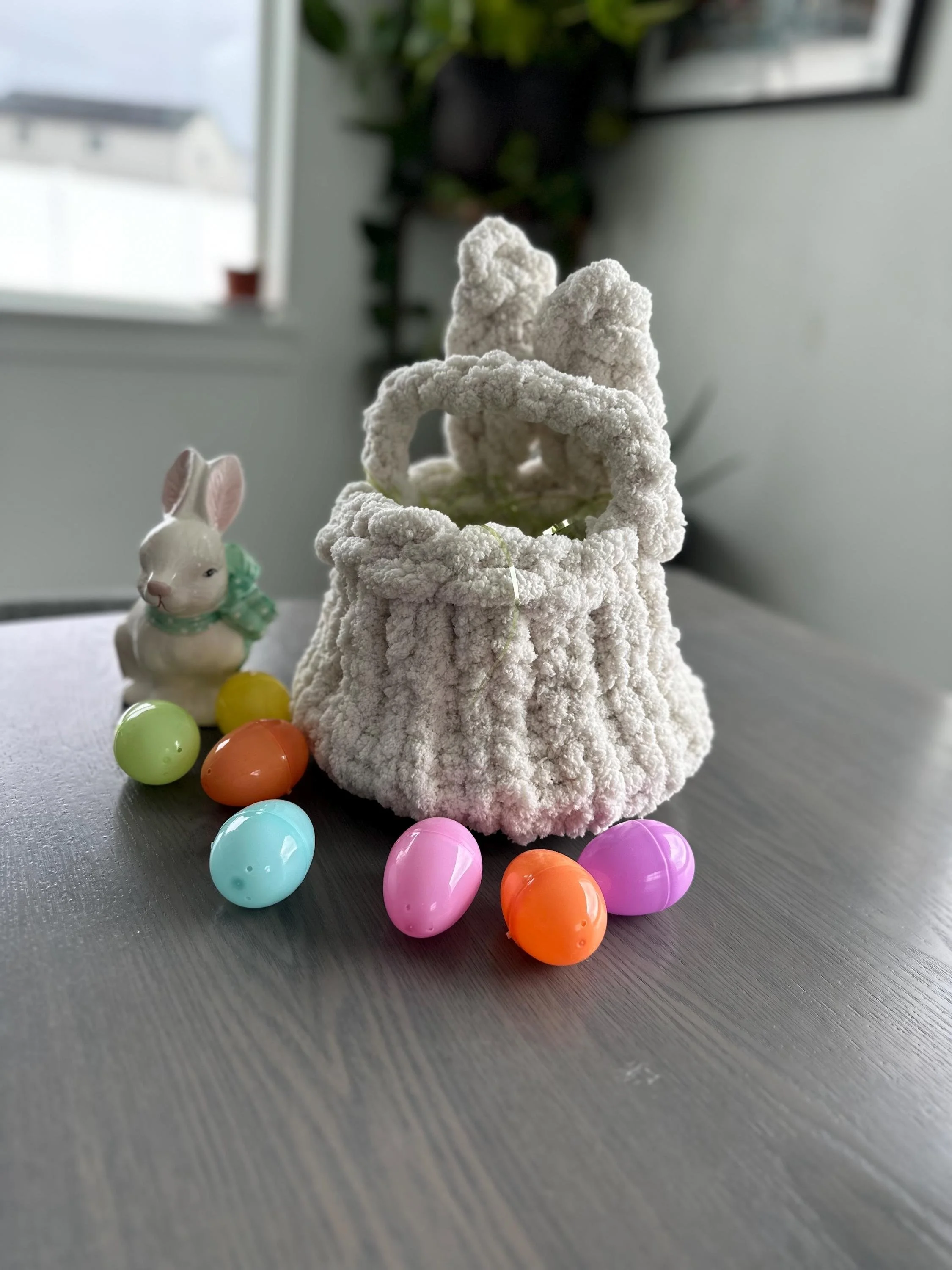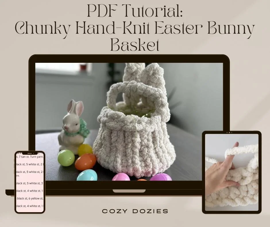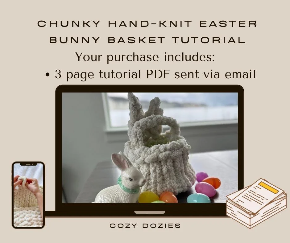 Chunky Knit Easter Bunny Basket PDF Pattern: DIY Craft Tutorial Hand Knitting