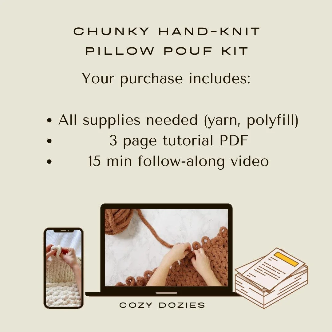 Chunky Knit Pillow Pouf DIY Kit: Yarn & Video Instructions