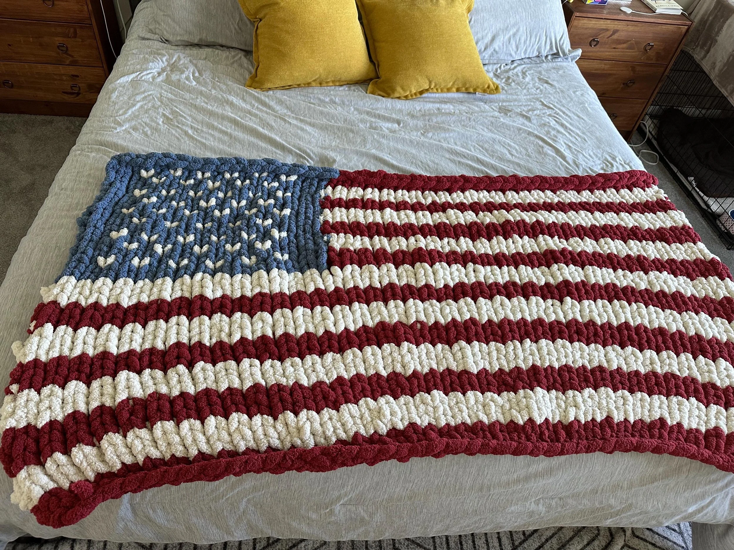Chunky Knit American Flag Blanket Video & PDF Tutorial (PDF Pattern)