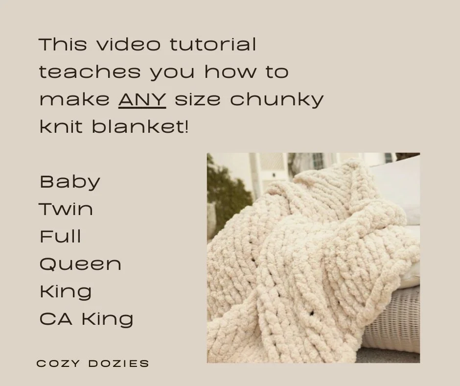 You will learn to hand-knit a cozy patriotic blanket, using 10 skeins of chunky yarn, available at retailers like Hobby Lobby or Amazon. The tutorial uses Cozy Dozies Knit Kit.